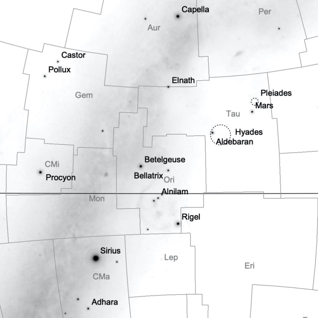 Winter “G” Capella–Pollux–Procyon–Sirius–Rigel–Aldebaran–Betelguese