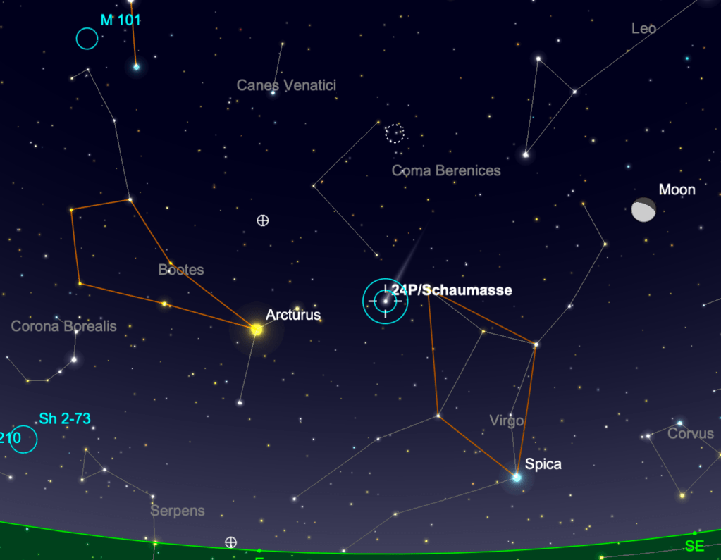Jan 8 – 24P Schaumasse Comet just cracks 8th magnitude, at Mag. 7.9 it is firmly a Bino comet