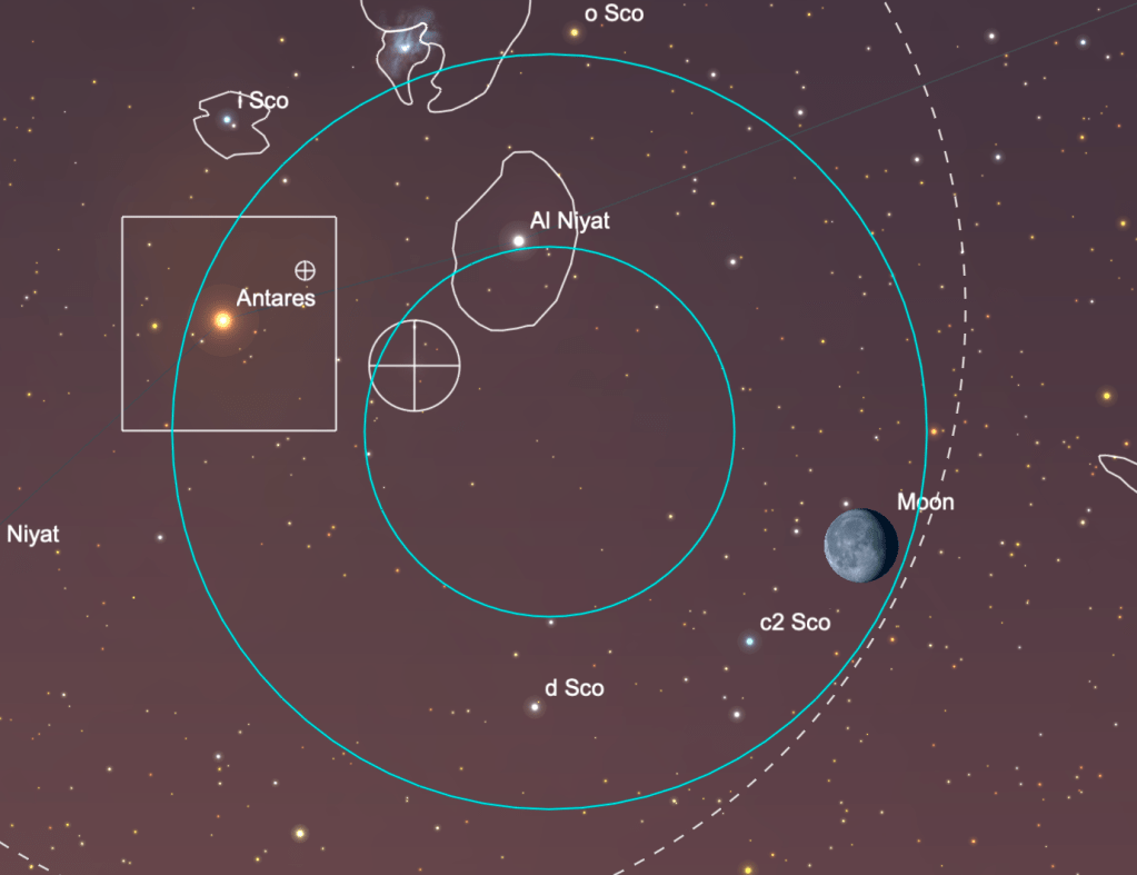 Also on 6th Moon and Antares at dawn less than 4 -degrees apart