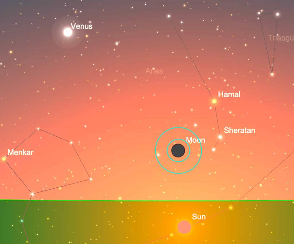 April 17 th – New AND ***** Very Young Moon visible 14.5hrs for us here, 6th magnitude so a real challenge but west of us esp. West coast it’ll be 17hrs…that’s very doable.