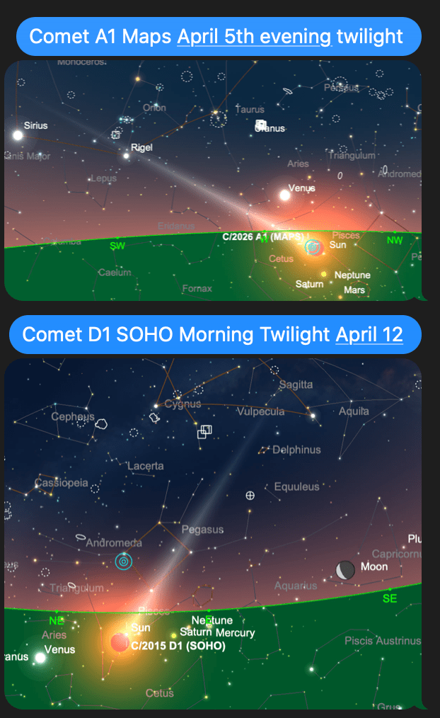 April 10th and later – Last Quarter Moon and Lunar X visible and 10th magnitude comet hanging out in Ursa Major